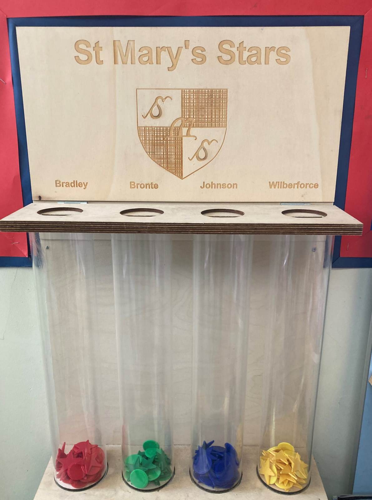 Every child in St Mary’s school belongs to a House Team. Our staff are always looking out for children who are demonstrating positive citizenship and good learning behaviours. Great role models are rewarded with House Team coloured tokens. We celebrate and display the coloured ribbons of the winning team on our House Cup Trophy every term.